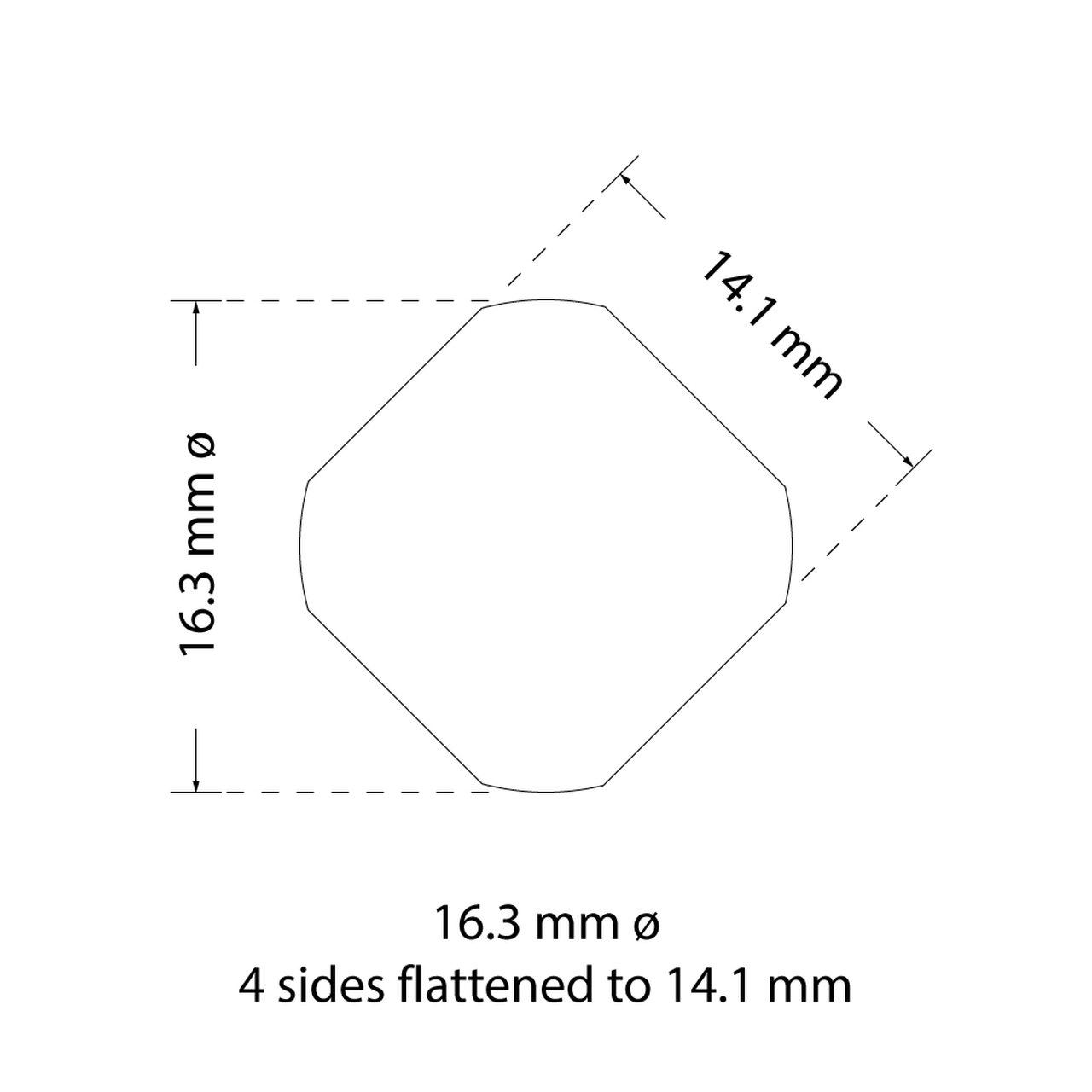 Blechlocher, 16,3mm 4-seitig abgeflacht auf 14,1mm