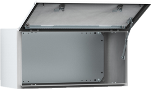 - horizontal aufklappbare Tür (wahlweise nach oben oder unten) mit mechanischer Arretierung