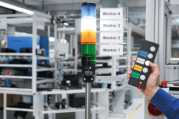 Mit dem neuen Ruf- und Meldesystem AndonWIRELESS können Probleme schnell und einfach gemeldet, angezeigt sowie zielgerichtet behoben werden. Wurden Störungen und Probleme bisher hauptsächlich durch Zurufe oder Umherlaufen gelöst? Dank AndonWIRELESS werden diese nun professionell per Knopfdruck signalisiert. Die Funkverbindung zwischen den Tastern und den Signalsäulen macht die Installation noch einfacher und schneller als bisher - das spart Zeit und Geld. Darüber hinaus ist jeder Taster (Andon WirelessBOX) neben dem Netzbetrieb auch für den reinen Batteriebetrieb ausgelegt. Das Macht Ihre Anwendung autark und für den mobilen Einsatz nutzbar, z. B. auf einem Gabelstapler oder Routenzug. So bleiben Sie zukunftssicher und flexibel für mehr Effizienz am Arbeitsplatz.